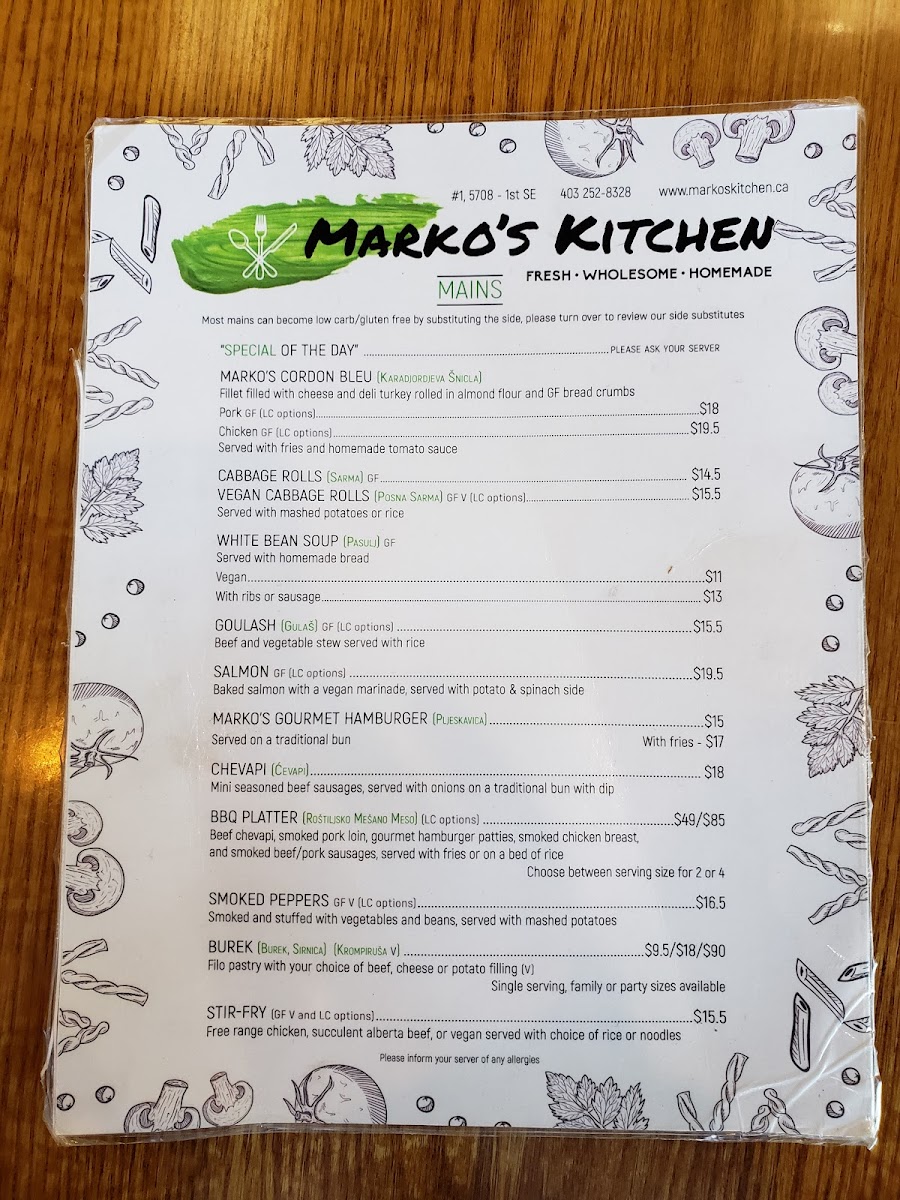 At Marko's Kitchen, we offer a delightful escape into the heart of Balkan cuisine right in Calgary. Our story is rooted in homestyle cooking and a commitment to quality, with every dish prepared from scratch. Known for our generous portions and warm atmosphere, we cater to diverse dietary preferences, providing gluten-free and dairy-free options. Signature dishes like Marko's Cordon Bleu, Chevapi, and stuffed peppers highlight our dedication to authentic flavors. With attentive service and the owner's personal touch, dining here feels like family. Don't miss our unique desserts and authentic Turkish coffee—where every meal is a heartfelt celebration of tradition and taste.