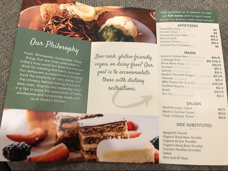 “ We had read a lot about Marko's kitchen on review sites, and seeing as we were in the mood for a celebratory family dinner, we decided to give them a try, and it didn't disappoint! The amount of dietary options is hugely welcome as I am mostly whole foods ketogenic these days. I had a plan to carb cycle today and indulge a bit (fries) and it was all fantastic. We ordered the broccoli cheese balls and the almond crackers, both excellent starters. They make their own almond flour for the batter and crackers base. Best I've ever had! Next came the mains and the portion sizes are very large for the quality and price. We ordered 1 x pork Cordon Bleu and 1 X chicken and 2 X gourmet hamburgers. All were the very definition of comfort food on a chilly winter evening. The flavors were all on point with the beef in the burger obviously fresh and flame broiled, and the chicken cordon bleu oozing with creamy cheese and a crunchy almond flour crumble batter . The atmosphere was incredibly friendly with a special table touch from Marko himself, who clearly loves his calling to cooking! The restaurant is long and narrow, giving each table a nice degree of privacy. Will we be back? In a heartbeat! Marko's Kitchen gets a very high recommendation from the entire family! We can't wait for our next visit! ”